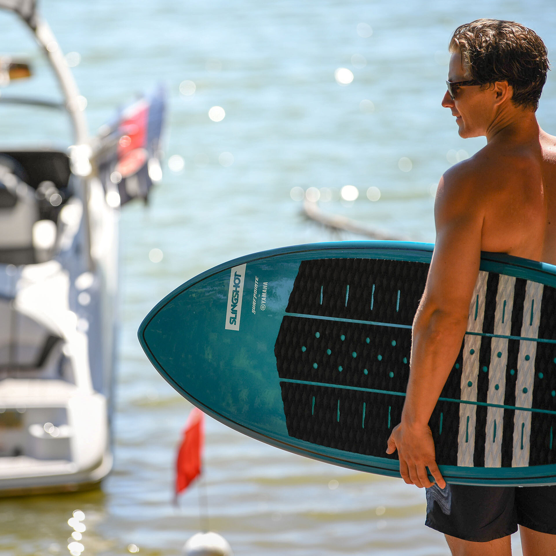 "Scoops" water towards the centreline, feeding the wake with a massive amount of clean water. The result is a wake that's more easily surfable, with a nice curl and deeper pocket that provides a larger riding area Custom designed specifically for the 24 ft/25 ft hull Fits flush to the bottom of the swim platform with no additional parts or spacers Symmetrical design fits port and starboard sides Locking pin uses boat's stern-eye to secure position Attaches quickly, no tools required Flotation tether included to prevent losing WakeEnhancer when dropped into water Soft foam pad on mounting surface
