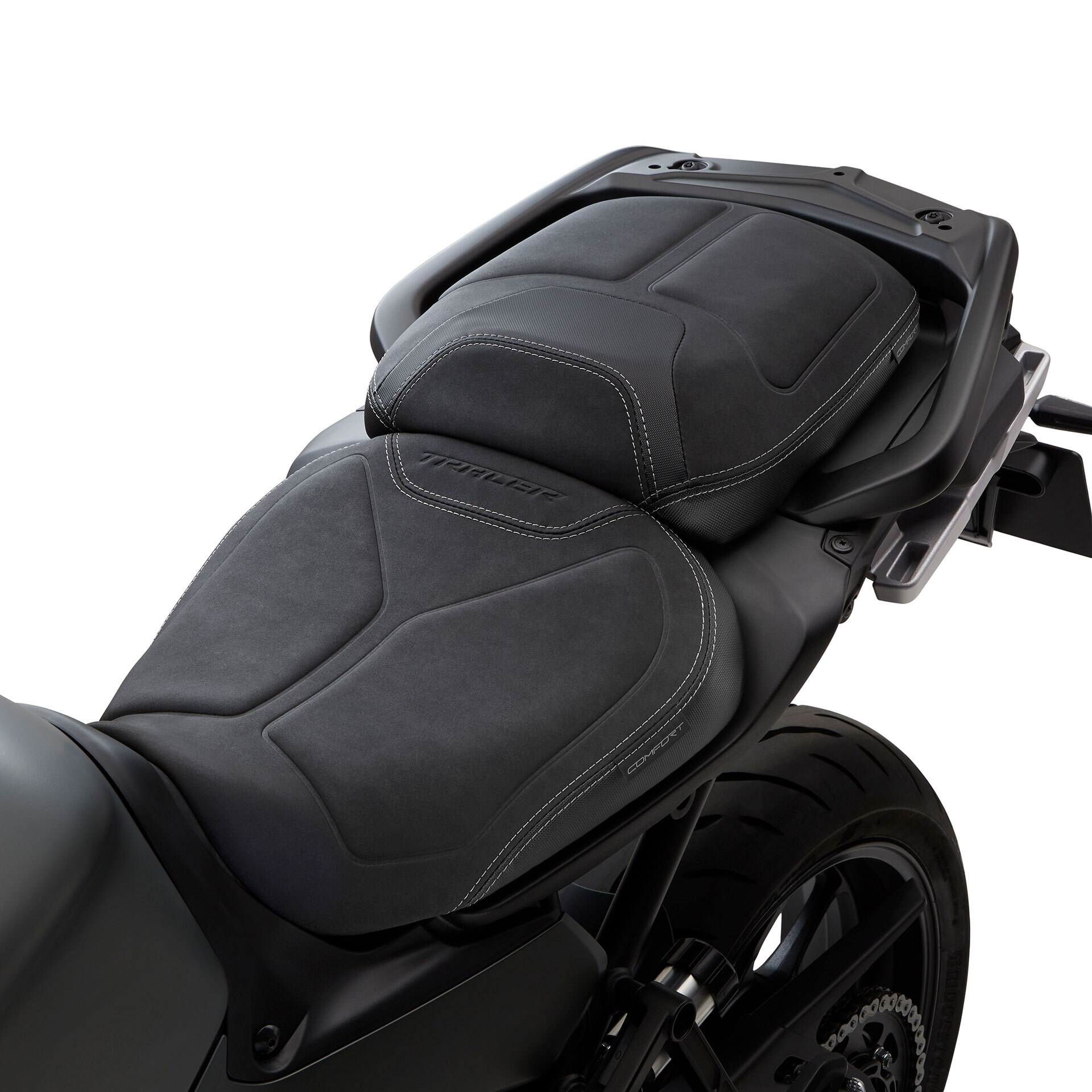 Passenger comfort seat designed to increase the riding comfort over long distances for the TRACER 9. The firm foam base and the soft surface pouches make sure you can enjoy Touring in duo at its best.